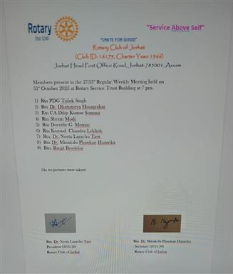 Rotary Weekly Meeting was held on 10/10/2025 at 7 pm in the Jorhat . . .